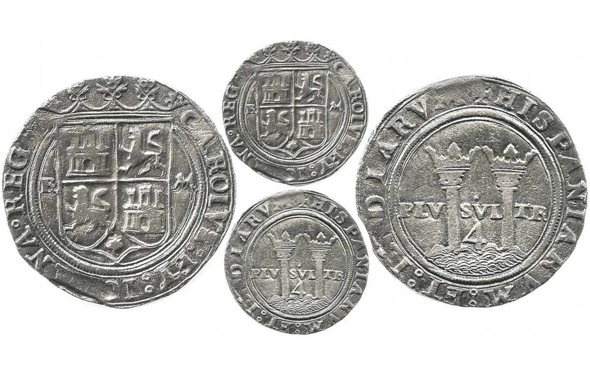Mexico City, Mexico, 4 reales, Charles-Joanna, "Late Series," assayer R to left, mintmark M to right, rare. N-unl (74 for type); S-M7; CT-90. 13.3 grams. Full legends and inner details, well centered, small part of edge slightly crude (as made), XF with light toning, a match with N-74 except with shield-side legend "10" (double annulets, etc.) and pillars-side legend "a." Pedigreed to the Ponterio auction of March 2010, lot #7310.