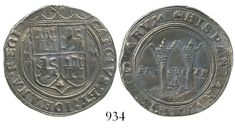 Mexico City, Mexico, 4 reales, Charles-Joanna, "Late Series," assayer R to left, mintmark M to right, rare. Nesmith-74 for type (obv leg 10, rev leg a); S-M7; KM-18. 13.4 grams. Low-contrast XF+, full legends and inner details, probably salvaged but no corrosion at all.