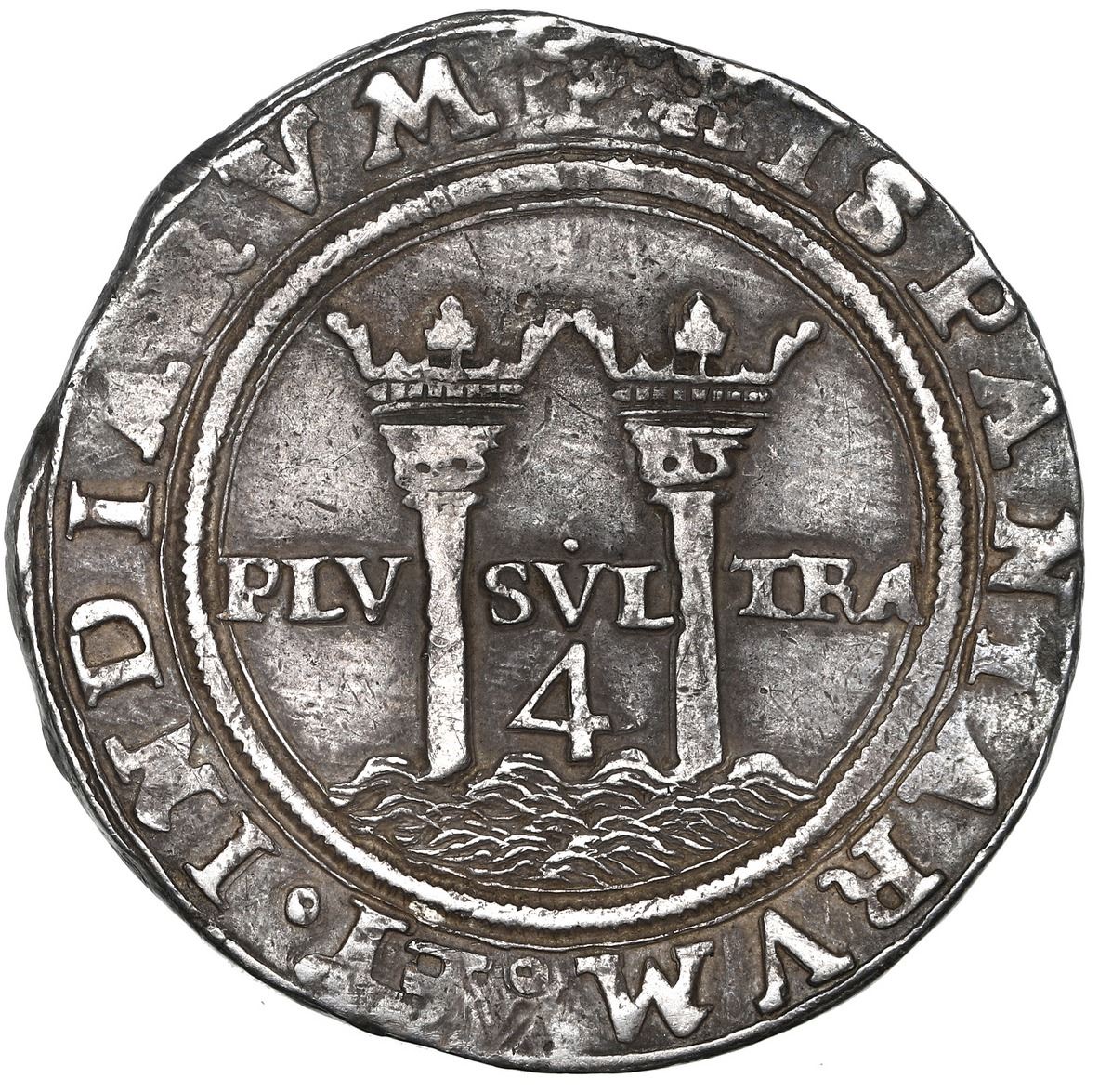 Mexico City, Mexico, 4 reales, Charles-Joanna, "Late Series," assayer R to left, mintmark M to right (R-M), NGC XF 45, ex-Rumbel. Nesmith-74; Cal-100; S-M7; KM-12. 13.58 grams. Until the finding of the “Golden Fleece Wreck” (ca. 1550), this issue was remarkably rare. Richly toned example with almost full legends and inner details, nicely centered. NGC #6448147-006. Pedigreed to the Clyde Hubbard Collection of Mexican Charles-Joanna Coinage (stated on label) and to the Henry Christensen Auction of October 1959 of the O.K. Rumbel collection, lot 446. Accompanied by original tag or holder from Clyde Hubbard.