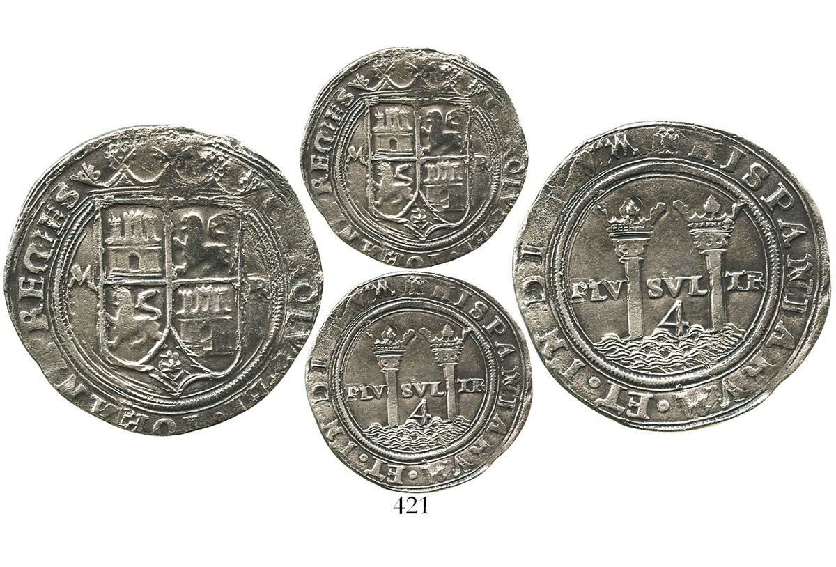 Mexico City, Mexico, 4 reales, Charles-Joanna, "Late Series," assayer R to right, mintmark M to left. Nesmith-70; S-M7; KM-18. 13.2 grams. Superb full pillars and nice full shield, much bold legend on a broad flan, no corrosion (and minimal toning) but some weak strike here and there, net XF+. Recovered from: "Golden Fleece wreck," sunk ca. 1550 in the northern Caribbean