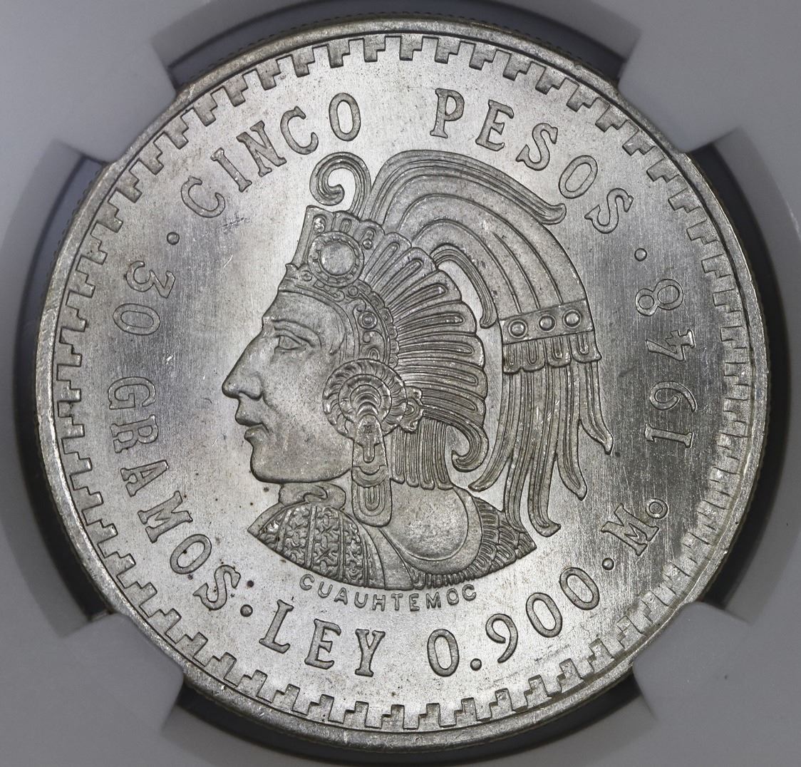 Mexico City, Mexico, 5 pesos, 1948, Cuauhtemoc, NGC MS 66+.