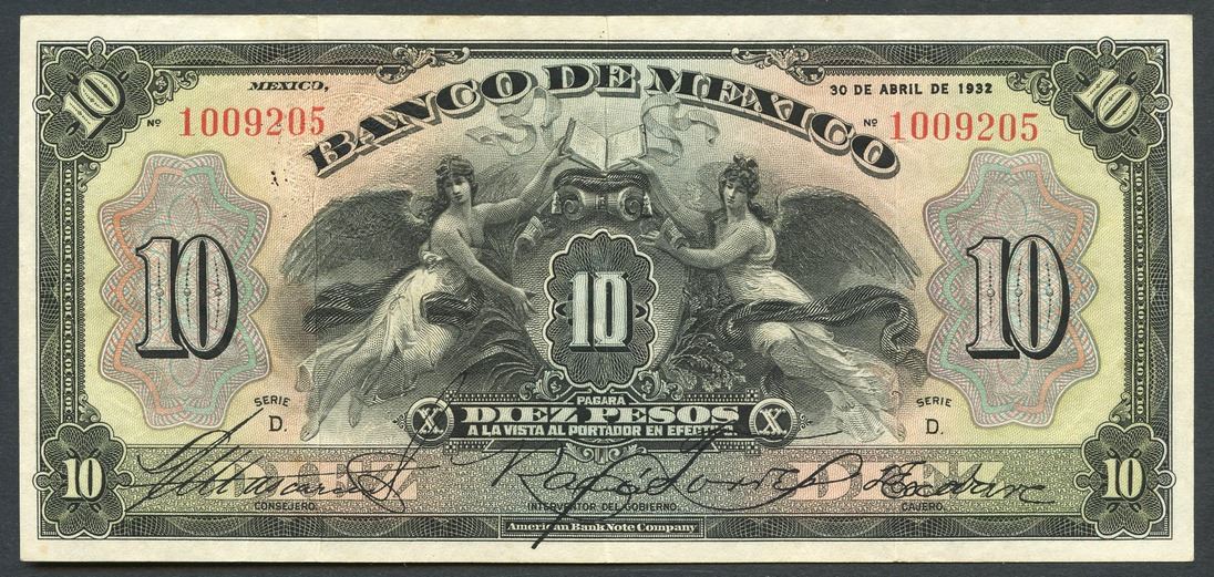 Mexico City, Mexico, Banco de Mexico, 10 pesos, 30-1-1932, series D.