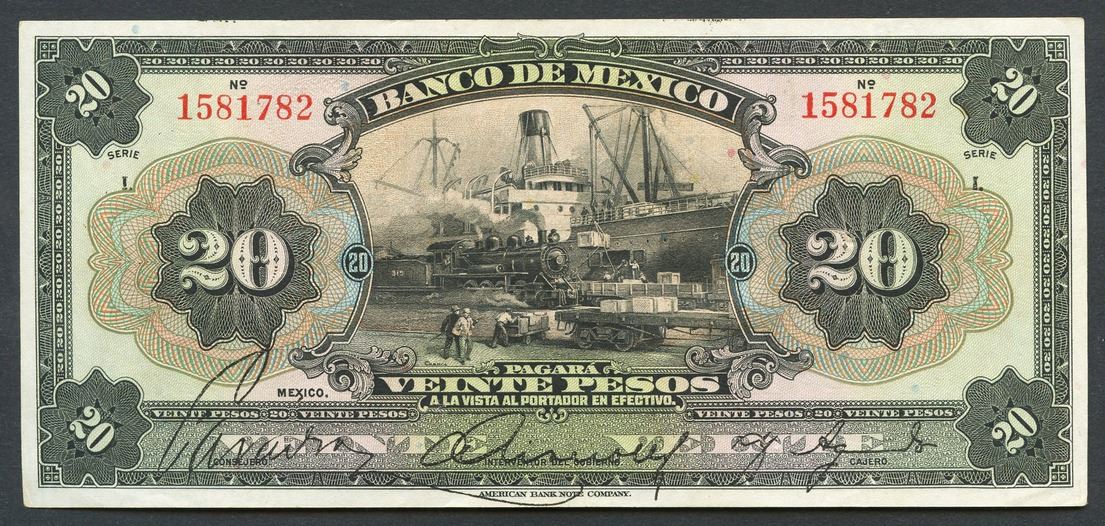 Mexico City, Mexico, Banco de Mexico, 20 pesos, ND (1925-34), series I.