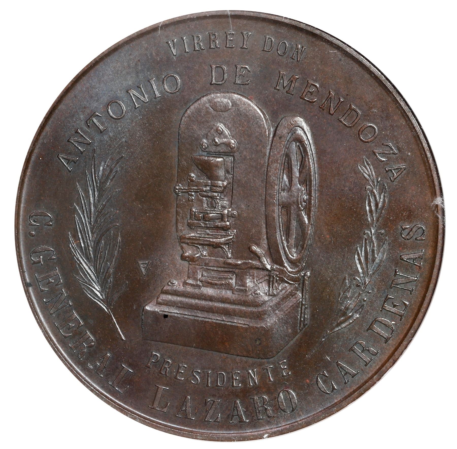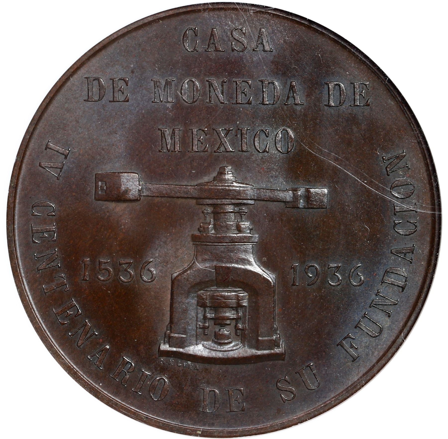 Mexico City, Mexico, bronze medal, 1936, 400th Anniversary of the Mexico City Mint, NGC MS 64 BN.