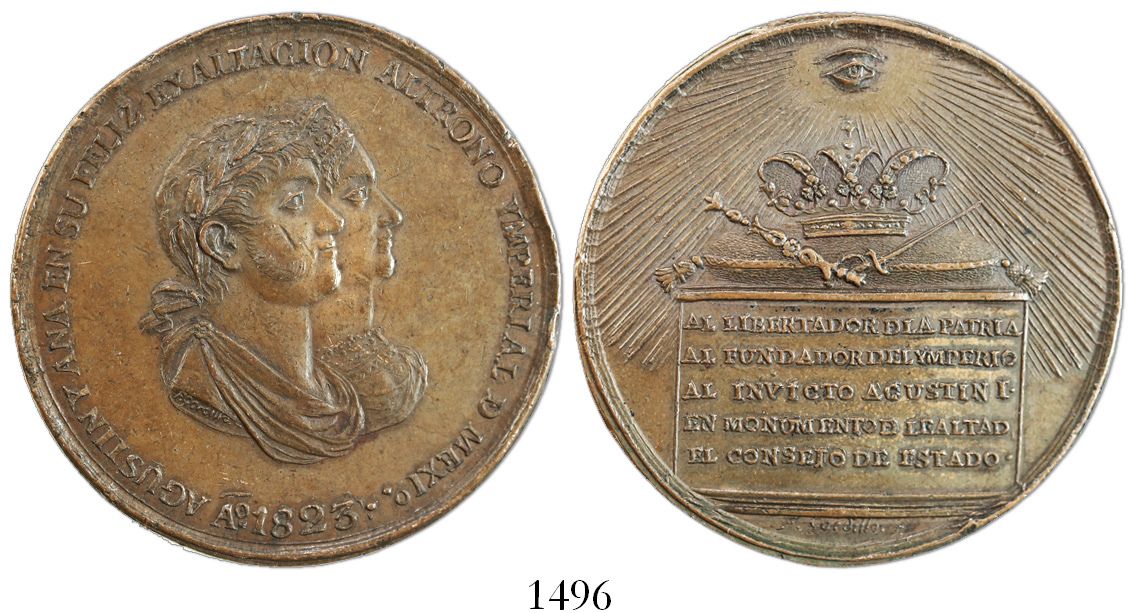 Mexico City, Mexico, bronze medal, Iturbide, 1823, Council of State, engraved by F. Gordillo.