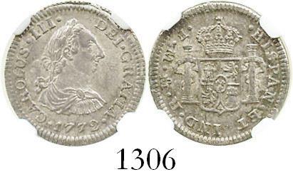 Mexico City, Mexico, bust 1/2 real, Charles III, 1772FM, initials facing rim, encapsulated NGC MS-62