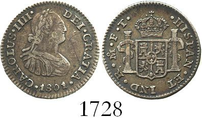 Mexico City, Mexico, bust 1/2 real, Charles IV, 1801FT.