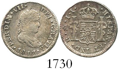 Mexico City, Mexico, bust 1/2 real, Ferdinand VII, 1817JJ.