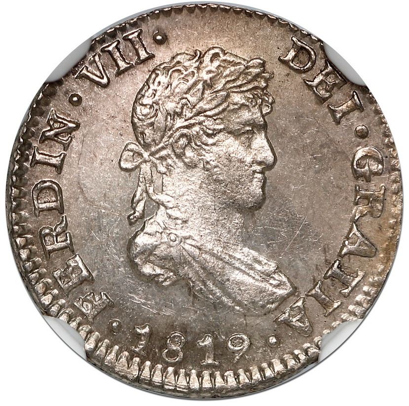 Mexico City, Mexico, bust 1/2 real, Ferdinand VII, 1819/8 JJ, rare, NGC MS 63.