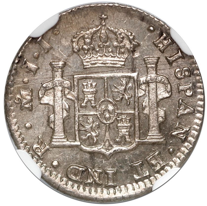 Mexico City, Mexico, bust 1/2 real, Ferdinand VII, 1819/8 JJ, rare, NGC MS 63. Yonaka-M05.119a; KM-74; Cal-409. Superb strike and pristine fields that even show light die-polish lines in the luster, very faintly gold-toned, the overdate fairly clear (rated R2 by Yonaka).