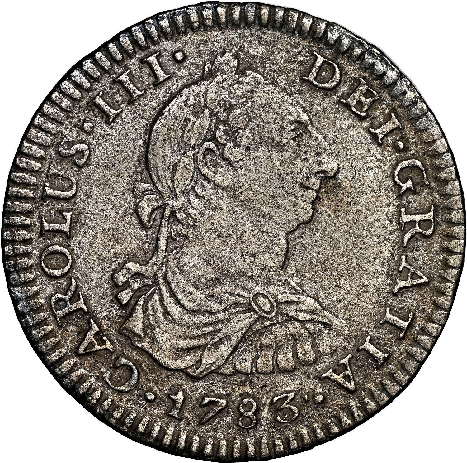 Mexico City, Mexico, bust 1 real, Charles III, 1783 FF, NGC AU details / saltwater damage / El Cazad