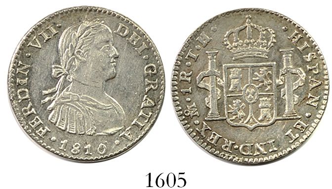 Mexico City, Mexico, bust 1 real, Ferdinand VII ("armored" bust), 1810/09TH.
