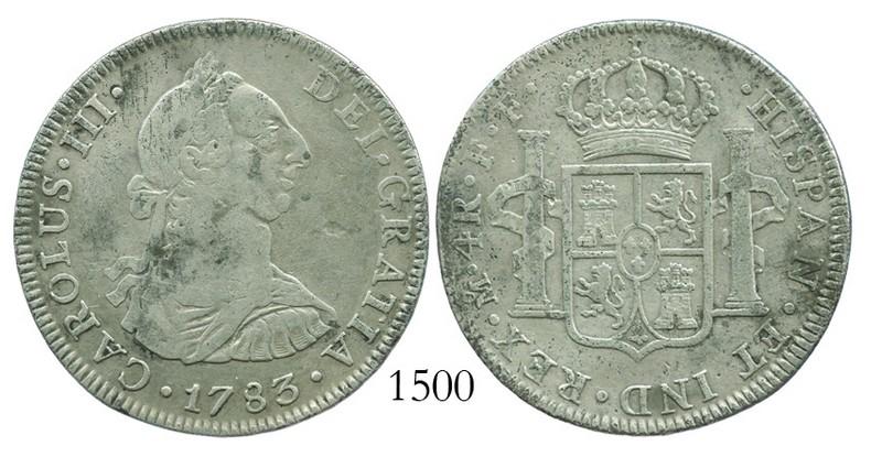 Mexico City, Mexico, bust 4 reales, Charles III, 1783FF. KM-97.2; CT-1145. 13.3 grams. Fine+ with tiny spots of toning and very slight pitting. Pedigreed to the Mark Bir collection.