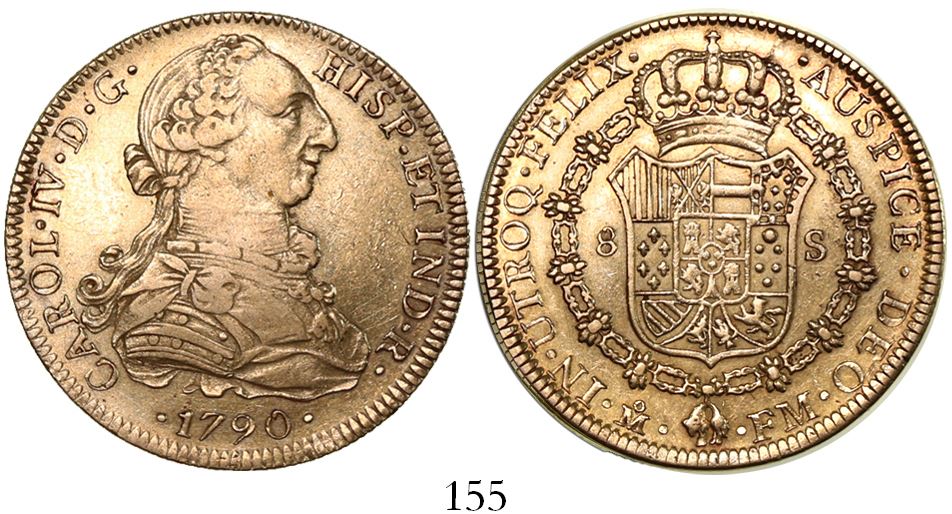 Mexico City, Mexico, bust 8 escudos, Charles IV transitional (bust of Charles III, ordinal IV), 1790