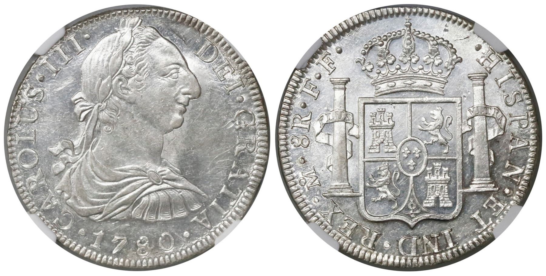 Mexico City, Mexico, bust 8 reales, Charles III, 1780FF, encapsulated NGC MS 61.