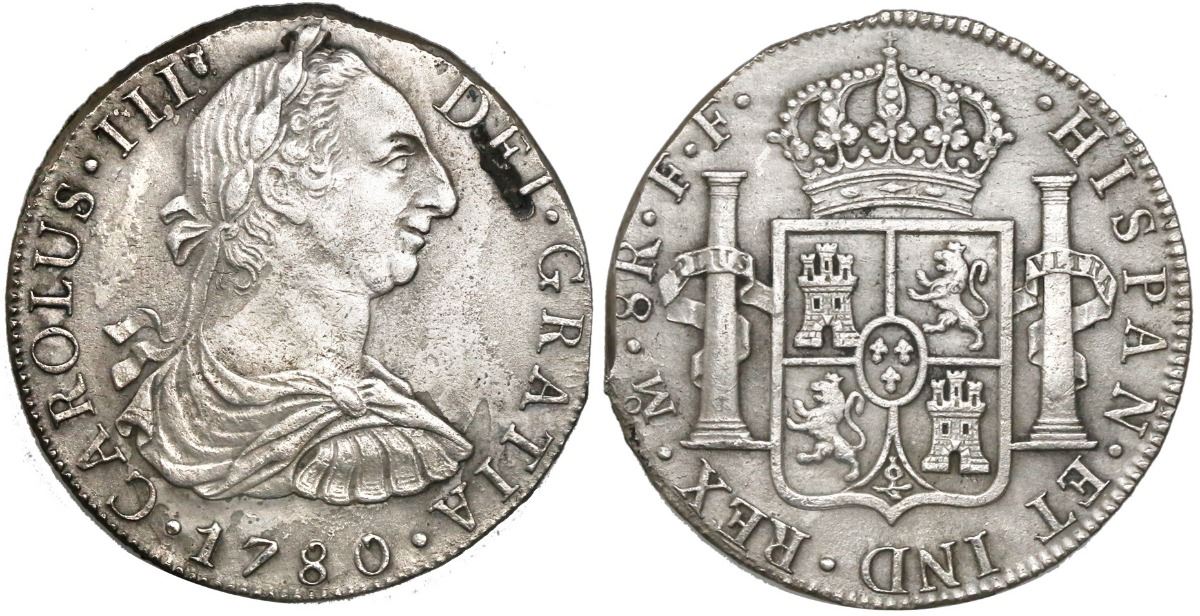 Mexico City, Mexico, bust 8 reales, Charles III, 1780FF, rare provenance.