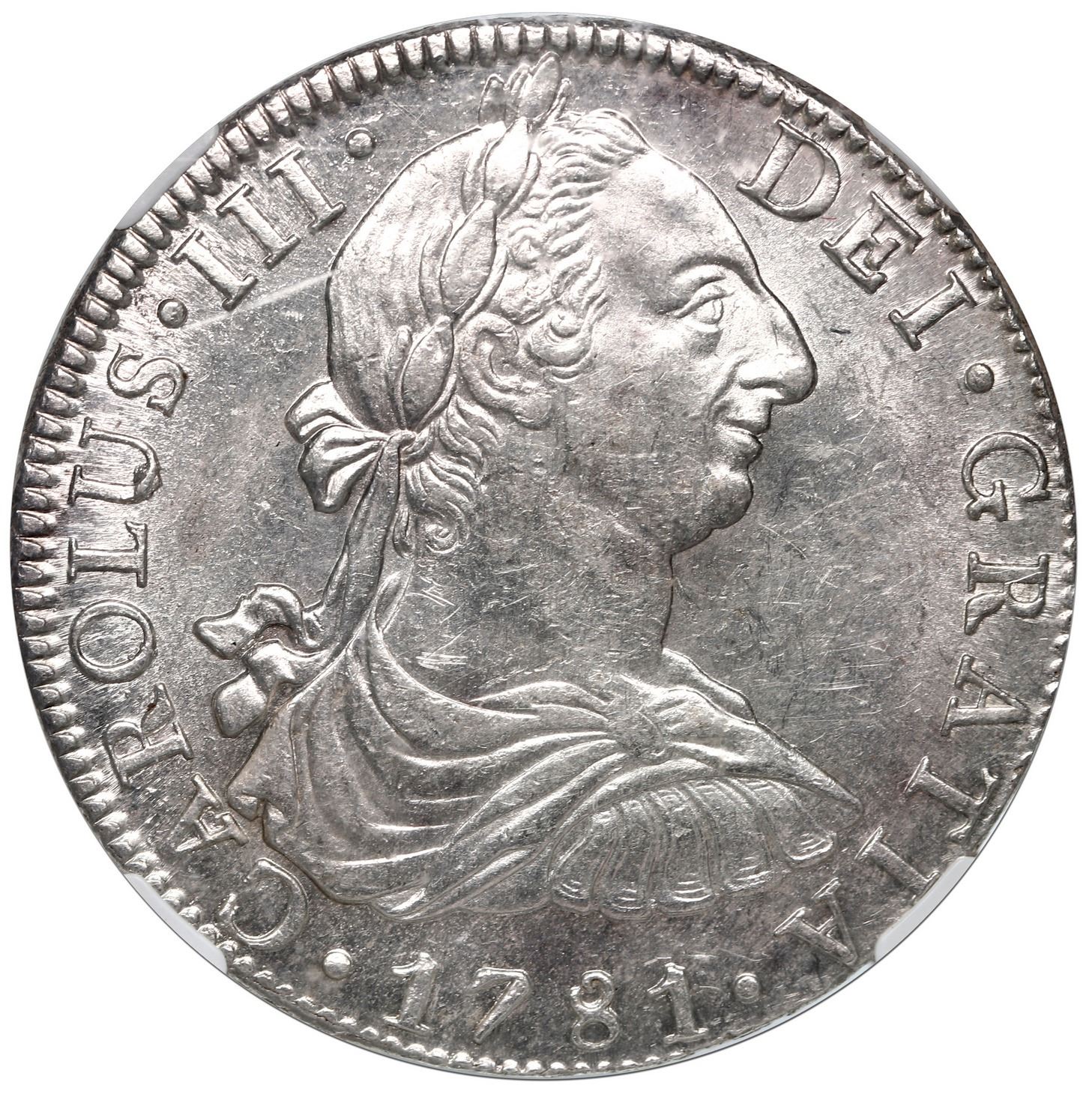 Mexico City, Mexico, bust 8 reales, Charles III, 1781 FF, NGC MS 62 ("top pop").