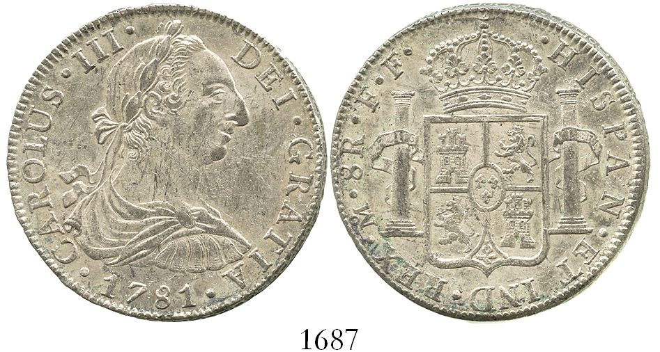 Mexico City, Mexico, bust 8 reales, Charles III, 1781FF.
