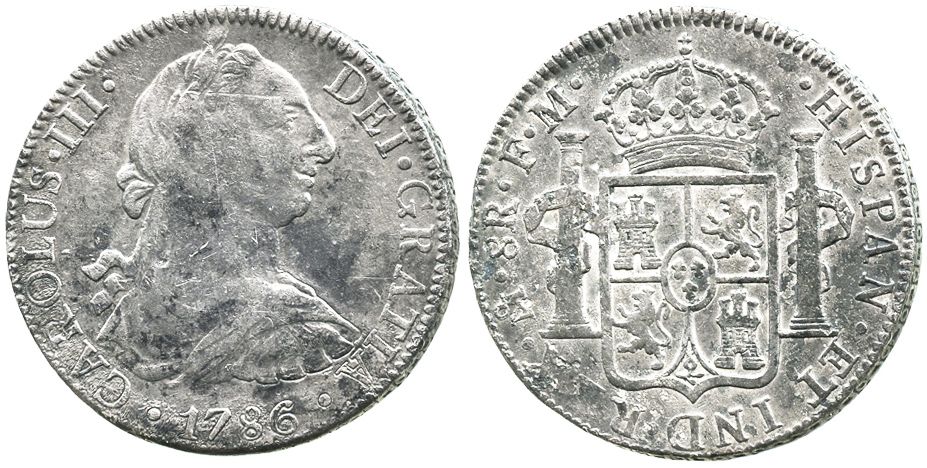 Mexico City, Mexico, bust 8 reales, Charles III, 1786FM.