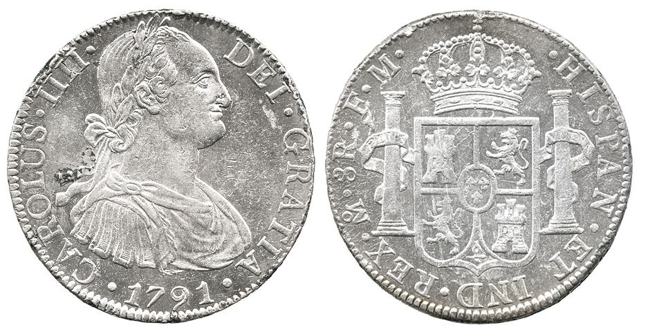 Mexico City, Mexico, bust 8 reales, Charles IV, 1791FM.