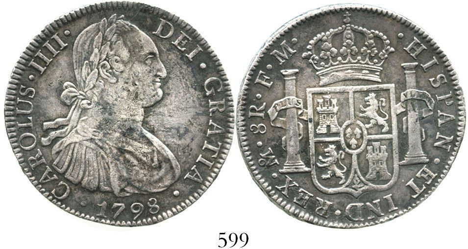 Mexico City, Mexico, bust 8 reales, Charles IV, 1798FM. KM-109; CT-692. 26.7 grams. Choice, uncorrod