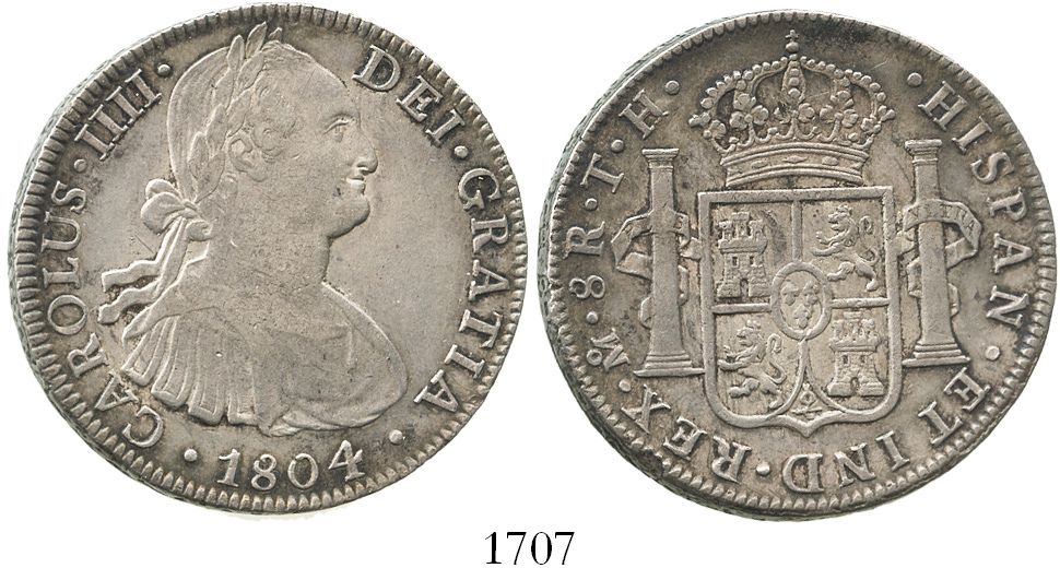 Mexico City, Mexico, bust 8 reales, Charles IV, 1804TH.
