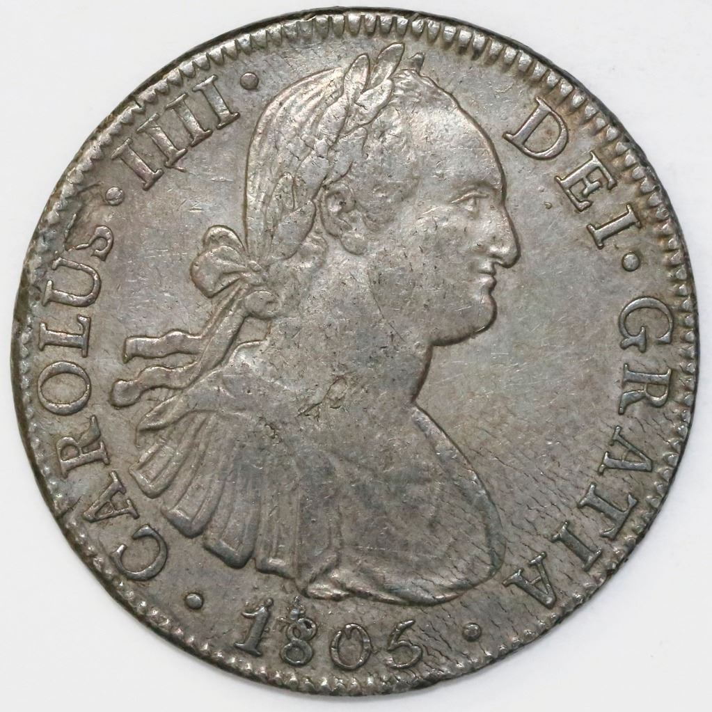 Mexico City, Mexico, bust 8 reales, Charles IV, 1805TH (narrow date).