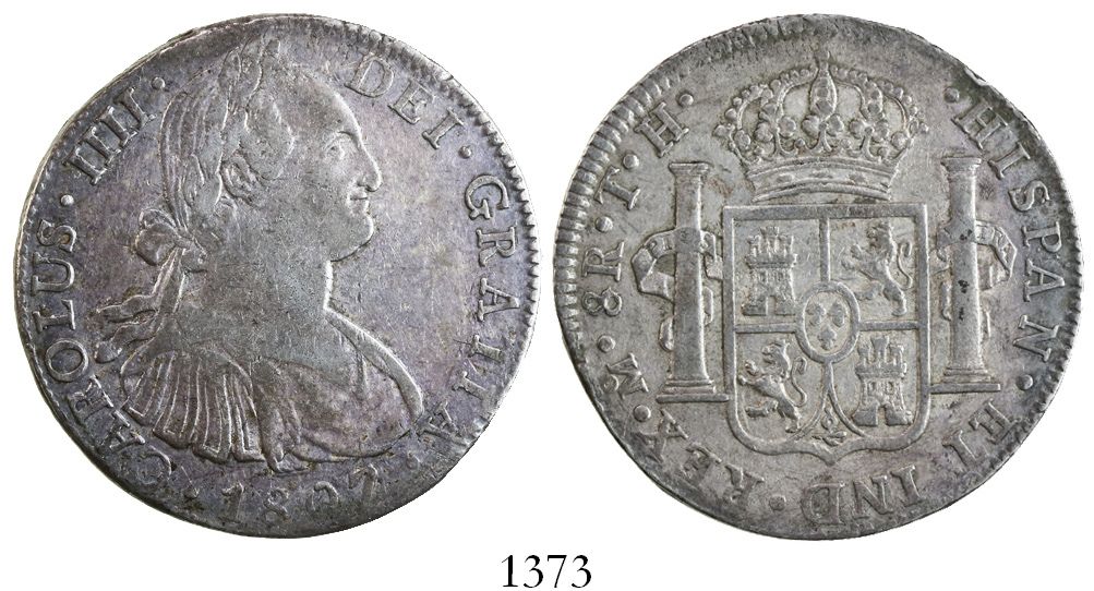 Mexico City, Mexico, bust 8 reales, Charles IV, 1807TH.