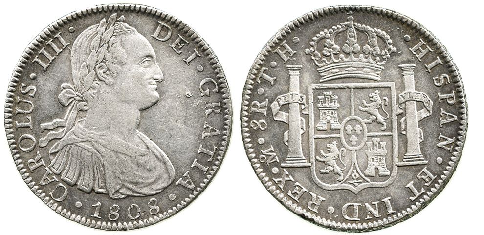 Mexico City, Mexico, bust 8 reales, Charles IV, 1808TH.