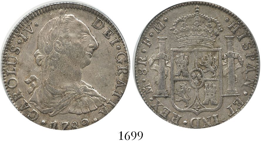 Mexico City, Mexico, bust 8 reales, Charles IV transitional (bust of Charles III, ordinal IV), 1789F