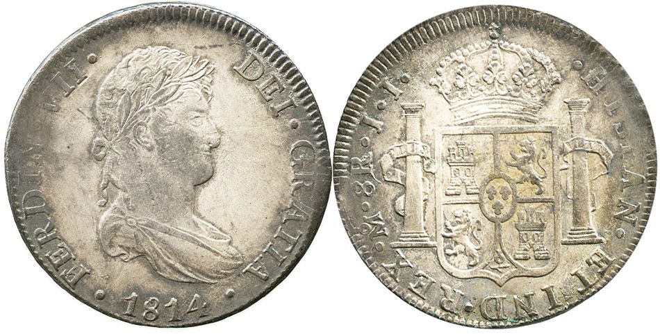 Mexico City, Mexico, bust 8 reales, Ferdinand VII, 1814JJ.