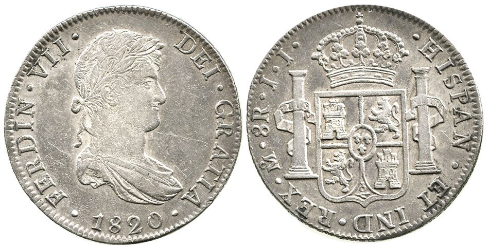 Mexico City, Mexico, bust 8 reales, Ferdinand VII, 1820JJ.