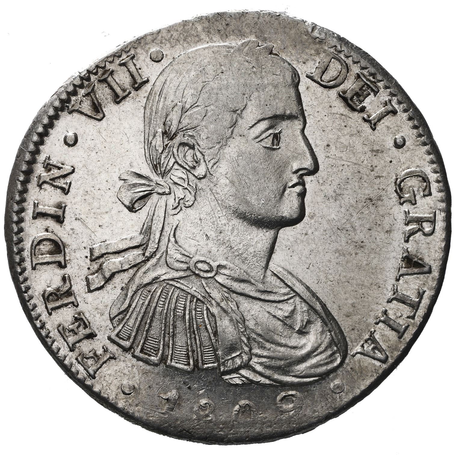 Mexico City, Mexico, bust 8 reales, Ferdinand VII transitional ( armored  bust), 1809TH.