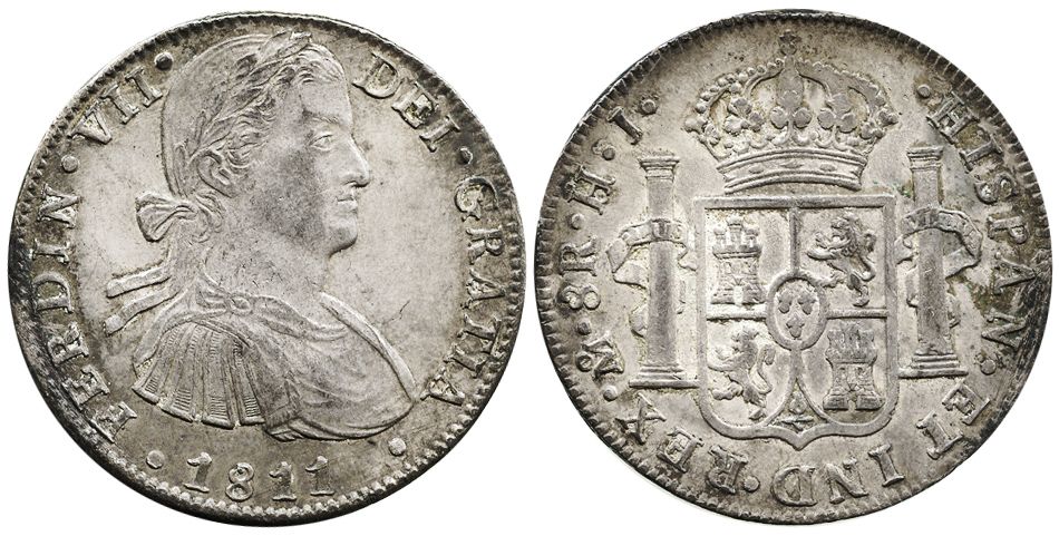 Mexico City, Mexico, bust 8 reales, Ferdinand VII transitional (armored bust), 1811HJ.