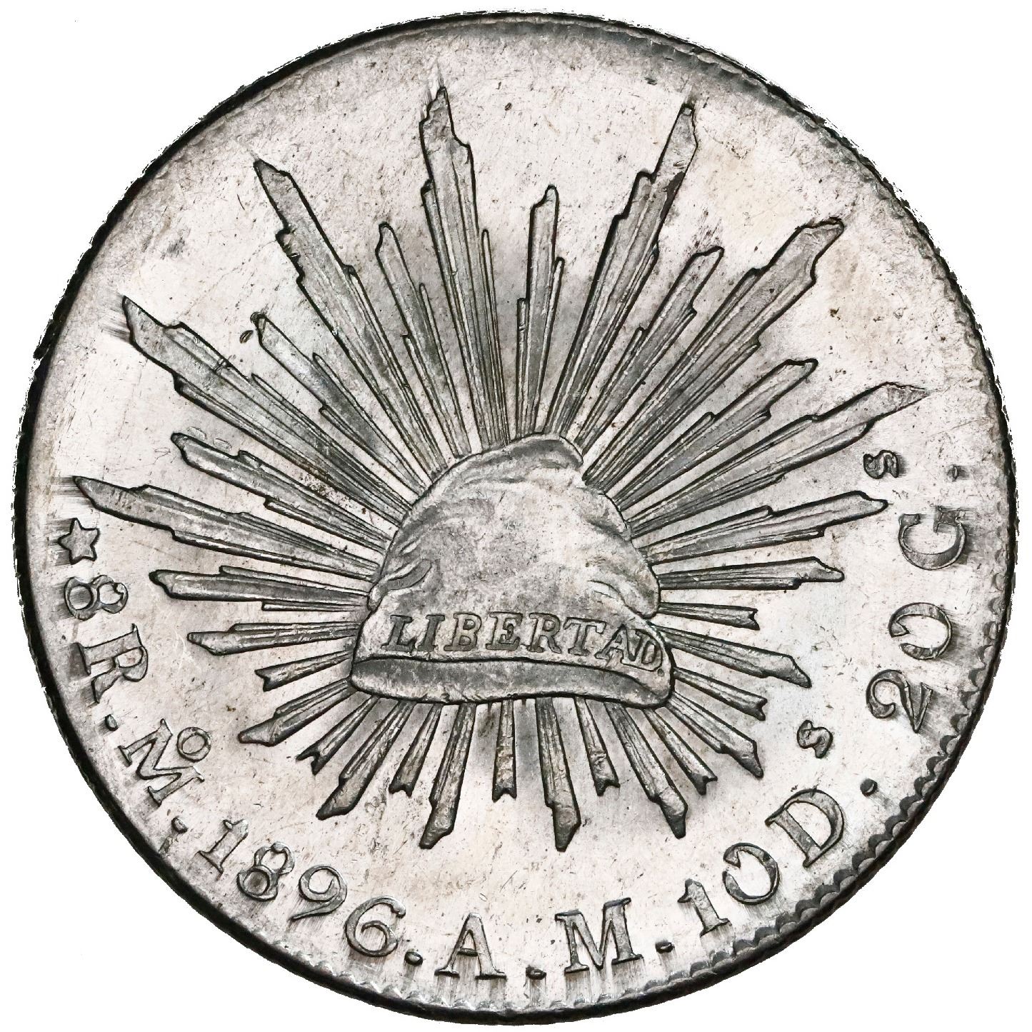 Mexico City, Mexico, cap-and-rays 8 reales, 1896AM, NGC MS 63.
