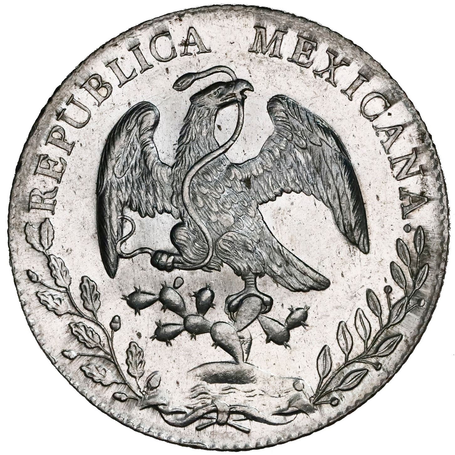 Mexico City, Mexico, cap-and-rays 8 reales, 1896AM, NGC MS 63. DP-Mo84; KM-377.10. Very bright luster with mirrorlike fields, faint surface hairlines on eagle side, light die-cracks on cap-and-rays side, rather flashy and choice. NGC #5939914-009.