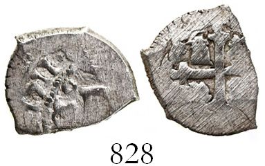 Mexico City, Mexico, cob 1/2 real, 1711(J), rare. S-M22; KM-24. 1.61 grams. Full and bold date, nice cross, non-toned XF (actually looks like Mint State with crude details), interesting surface striations from striking, no corrosion but possibly salvaged from the 1715 Fleet.