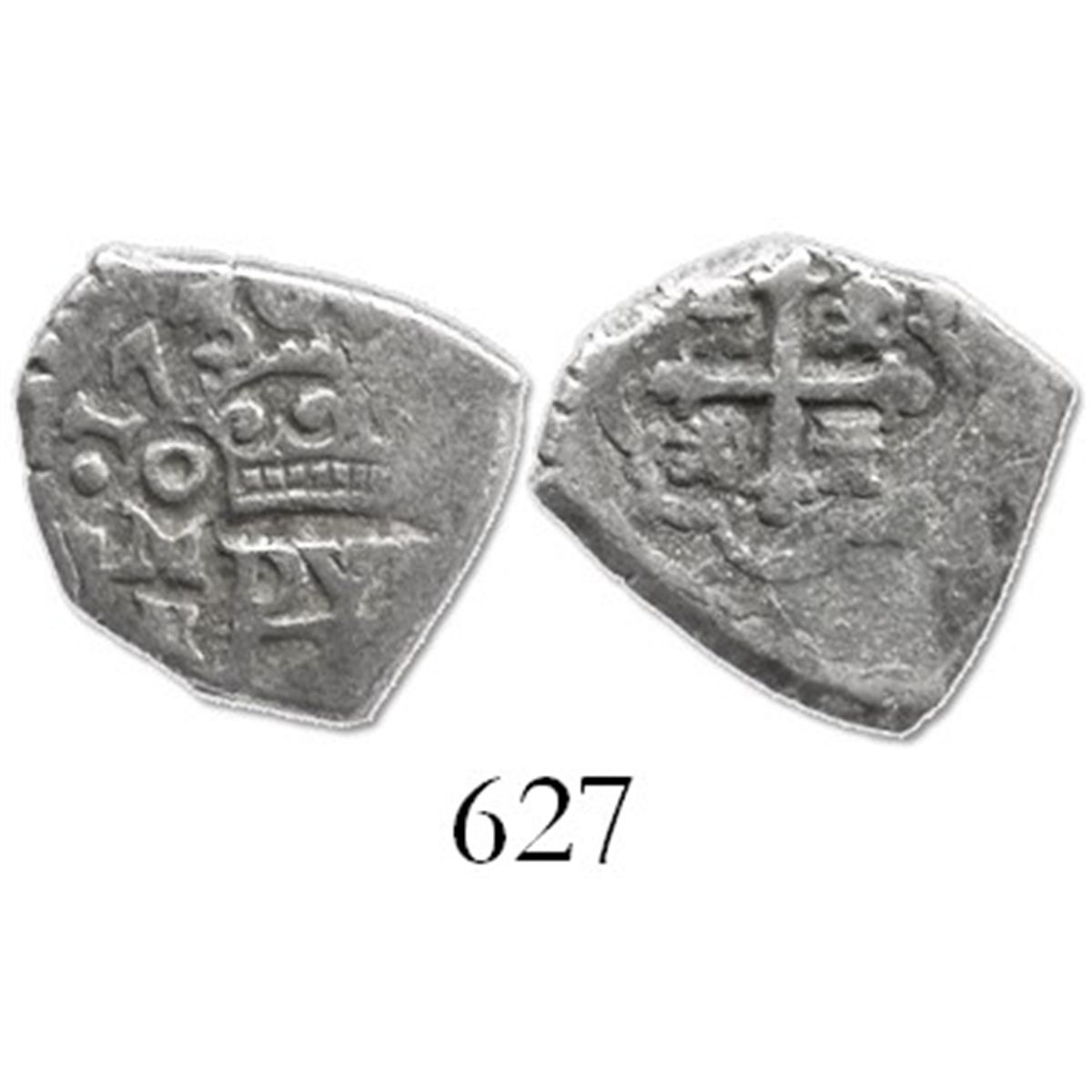 Mexico City, Mexico, cob 1/2 real, 1730R, ex-Pullin and "Meseta Central" hoard. S-M24; KM-24a; CT-1842. 1.7 grams. Bold date and oMR, nice little cross, toned VF. Pedigreed to the John Pullin collection.