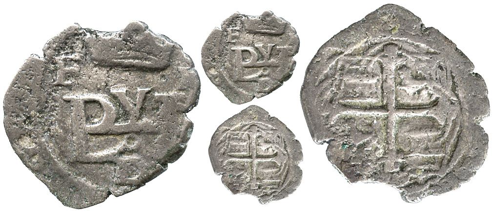 Mexico City, Mexico, cob 1/2 real, Philip III, assayer F at upper left, assayer oD below monogram, rare. S-M14a. 1.6 grams. Off-center (but nearly full) monogram with full and bold assayers F and oD, also full crown and cross (the latter well centered), richly old-toned VF. Note this co-assayer struck coins under both Philip II and Philip III, but they are distinguishable in the 1/2R denomination by virtue of the fact that the monograms are different (V above the centerline for Philip III). Pedigreed to our Auction #4, lot 661, with original lot-tag.