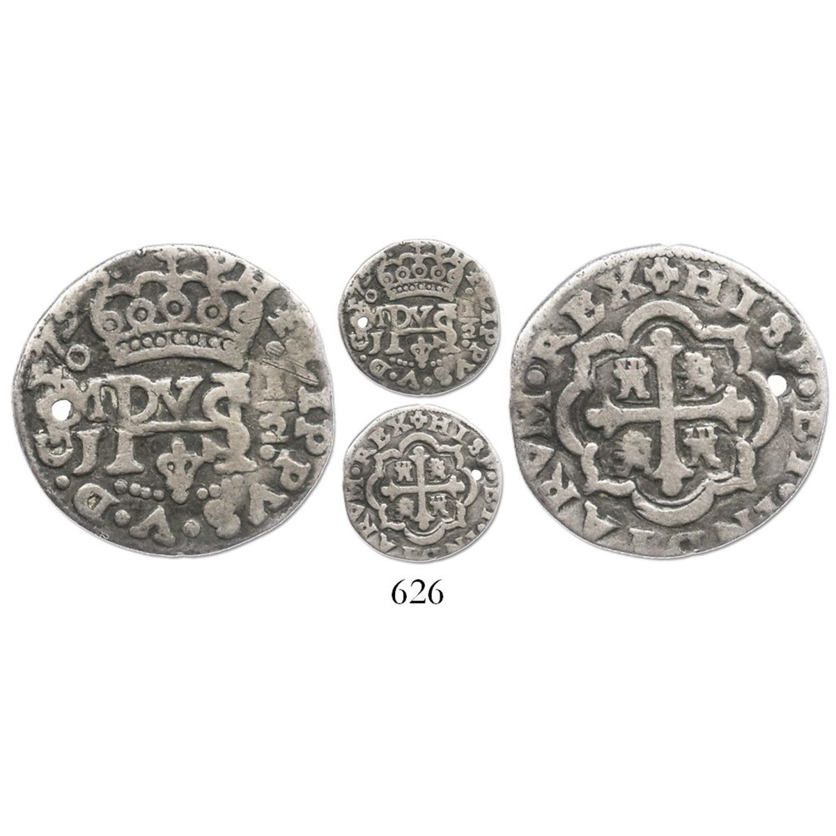 Mexico City, Mexico, cob 1/2 real Royal, 1722J. S-M22; KM-R24; CT-1810. 1.5 grams. Attractively toned AVF with typically nice details, tiny hole at one end of the cross.
