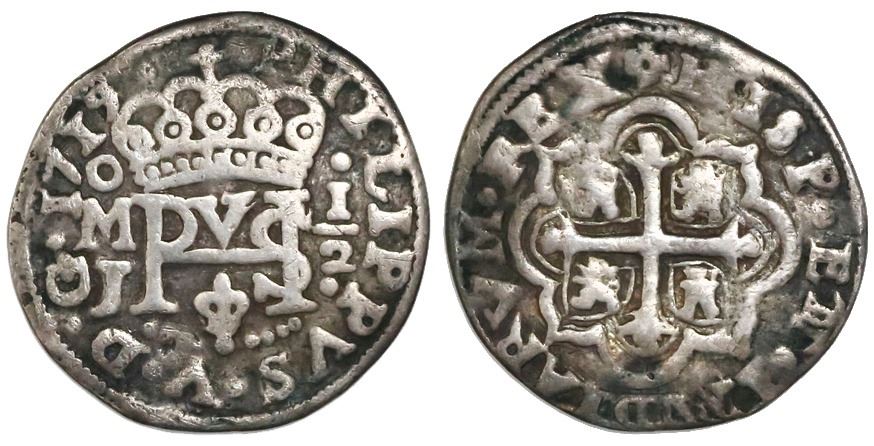 Mexico City, Mexico, cob 1/2 real Royal (galano), 1719/7J, rare (unlisted overdate).