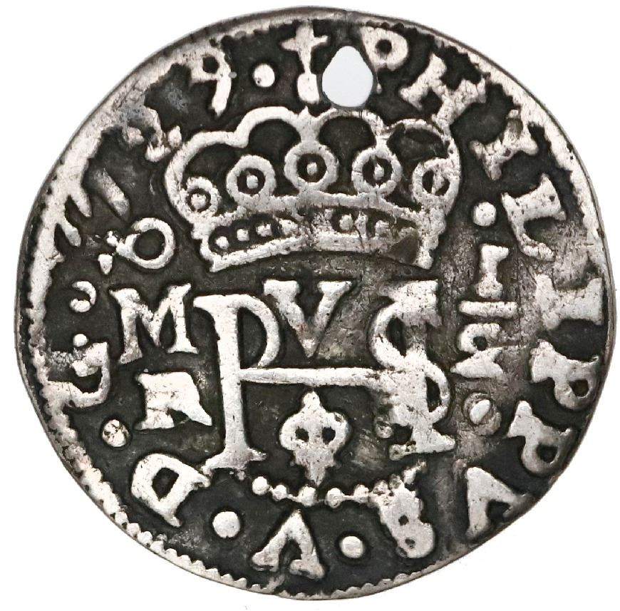Mexico City, Mexico, cob 1/2 real Royal (galano), 1729/8R/D, extremely rare. S-M24; KM-unl (R24 for type); Cal-unl (Type 51). 1.22 grams. VF+ with choice full details, the overdate and over-assayer quite evident (first example we have encountered), contrastingly toned, typically holed at top, slightly off-center reverse. Pedigreed to the Isaac Rudman Numismatic Cabinet.
