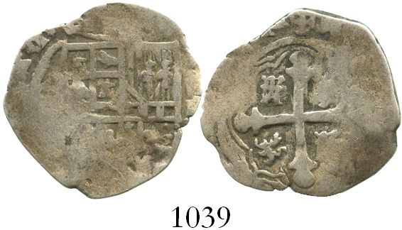 Mexico City, Mexico, cob 1 real, (16)21/0(D), rare. S-M18; KM-unl. 3.4 grams. Clear date with certain 1/0, nearly full shield and cross despite flat areas, otherwise Fine, with toning around details.