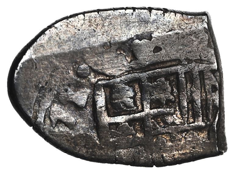 Mexico City, Mexico, cob 1 real, 1712 (J), rare. S-M22; KM-30; Cal-477. 3.11 grams. Cute little "cabo de barra" flan (oval bar-end with one straight cut), solid and uncorroded, also richly toned, bold full 12 of date (penultimate digit looks like a 7). Recovered from: Spanish 1715 Fleet, east coast of Florida