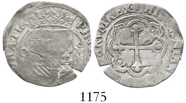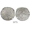Mexico City, Mexico, cob 1 real, Philip II, assayer O to left, mintmark oM to right. S-M11; KM-26; CT-644. 3.2 grams. Good full cross and crown, very weak shield, no toning, net Fine.