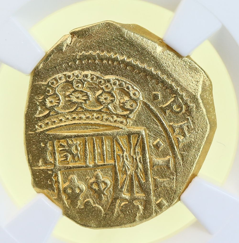 Mexico City, Mexico, cob 2 escudos, (1715J), from the 1715 Fleet, encapsulated NGC AU 55.