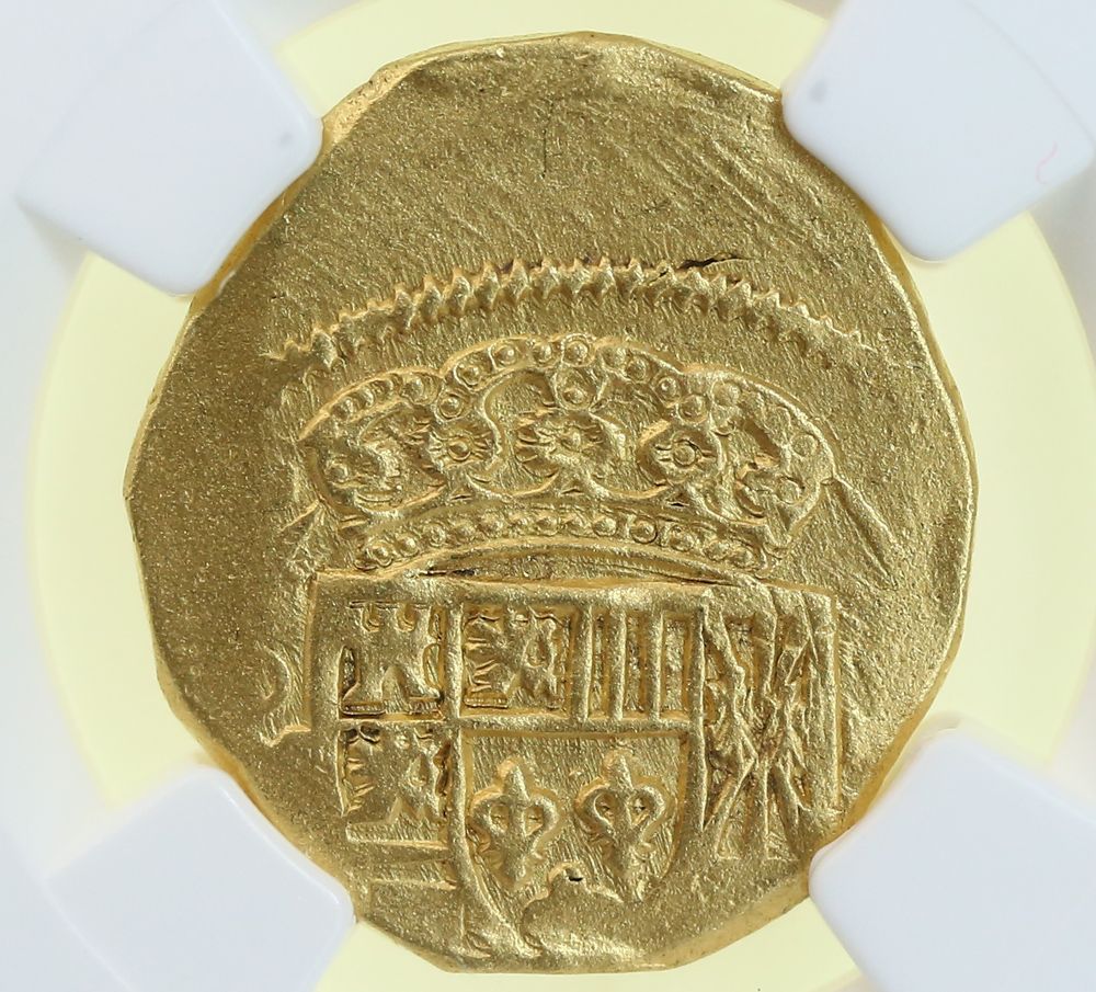 Mexico City, Mexico, cob 2 escudos, (1715J), from the 1715 Fleet, encapsulated NGC MS 61.
