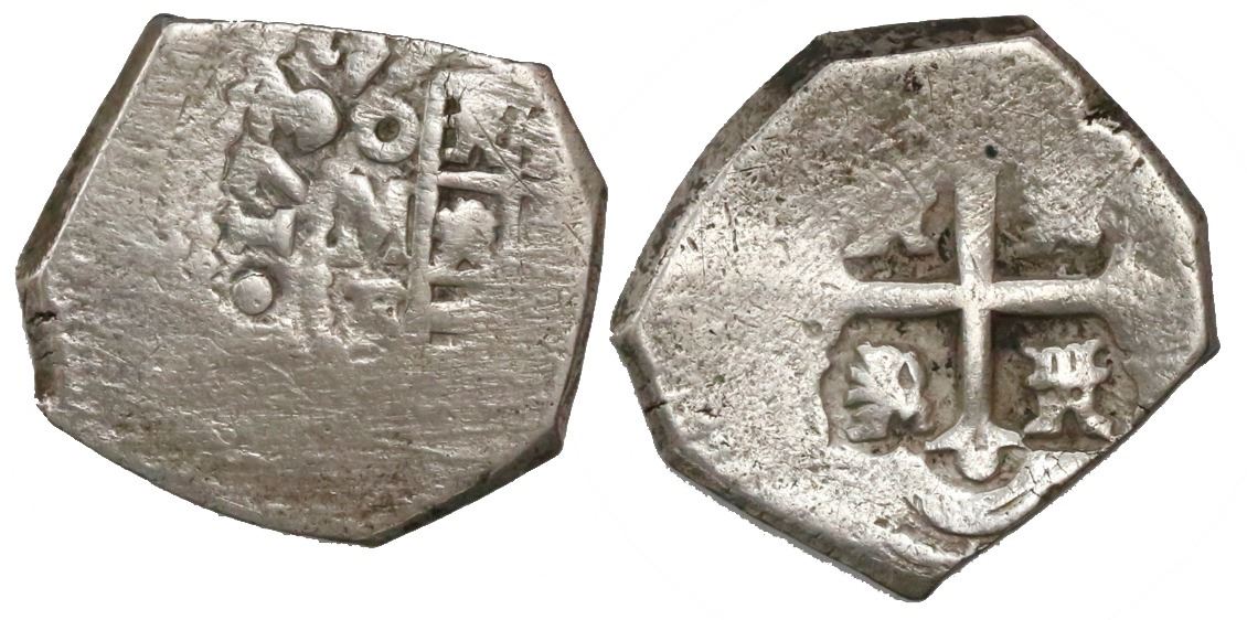 Mexico City, Mexico, cob 2 reales, 1732F. S-M26; KM-35a; CT-1270. 6.82 grams. Bold full date and oMF, nearly full cross, much peripheral flatness but 100% corrosion-free (XF). Pedigreed to the Charles Eidel collection. Recovered from: Spanish 1733 Fleet, Florida Keys