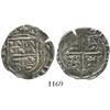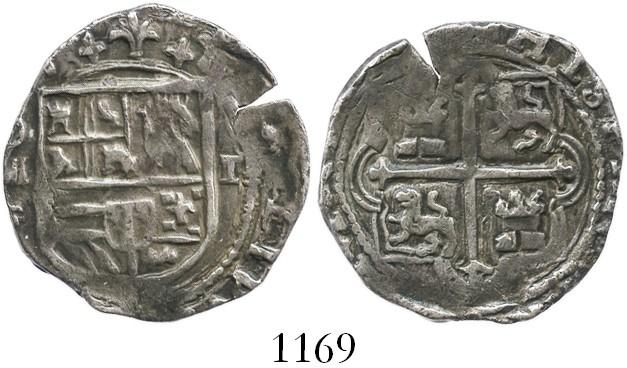 Mexico City, Mexico, cob 2 reales, Philip II, assayer F. S-M12; KM-31; CT-499. 6.5 grams. Choice full cross and crown and shield, clear oMF and II, round and well struck VF, richly toned.