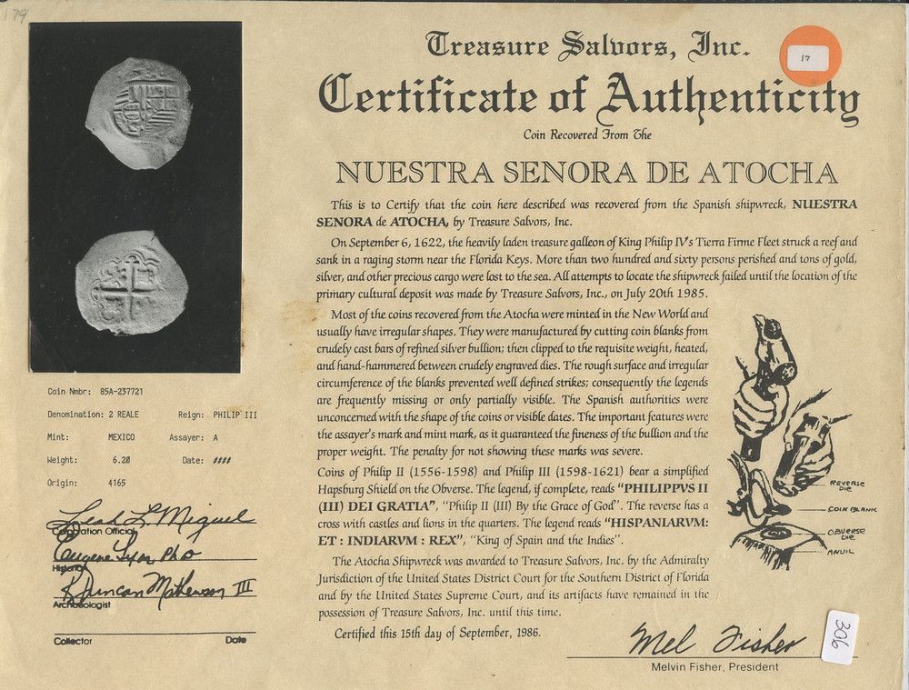 All items are genuine unless noted. Most shipwreck coins and artifacts come with a certificate of authenticity (please check the description for each item). By bidding in this auction you understand and agree to the Terms and Conditions posted here.